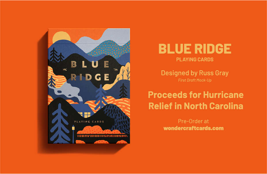 Designed by Russ Gray, produced by Wondercraft, and developed by Kevin Reylek and Chris Hage, this deck not only captures the breathtaking beauty of the Blue Ridge Mountains but also serves a greater purpose. 100% of profits from this deck will be donated to the vital relief efforts underway in the region.